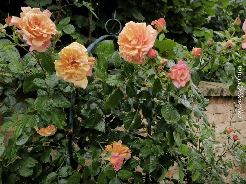 Rose 'Aloha®' - großblütige, kletternde Rose, die eine Höhe von 2,5-3 m erreicht. Das Wachstum ist üppig. Auf den ersten Blick besticht sie durch ihre gefüllten Blüten, die bis zu 8 cm groß sind und in Orange- und Lachsfarben gefärbt sind, auf der Rückseite sind sie rosa. Sie duften zart. Sie blüht remontierend, von Juni bis September. Ein wahres Schmuckstück für jeden Garten. Sie macht sich wunderbar an einer Pergola oder an einer Wand.