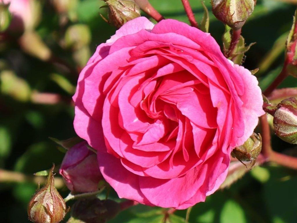 Rose 'Amica®' - gehört zu den niedrigen Strauch- bis Bodendeckerrosen. Der Strauch wächst kompakt und breit, erreicht im ausgewachsenen Zustand eine Höhe von ca. 50 cm bei gleicher Breite, mit dichtem, dunkelgrünem, glänzendem Laub. Die Blüten sind voll, 4-5 cm im Durchmesser, die Farbe geht von hellrosa bis zu einem satten rosafarbenen Zentrum, was besonders im Herbstlicht zur Geltung kommt. Der Duft ist zart. Die Blütezeit ist remontierend von Juni bis Oktober, je nach Sommerverlauf bis zu den ersten Frösten. Der Habitus ist niedrig, leicht überhängend, geeignet für Flächenpflanzungen, Wegränder und Beeteinfassungen. In städtischen Grünflächen und kleinen Gärten findet sie Verwendung als schnell schließende Bodenbedeckung, die die Verunkrautung reduziert. In Kübeln auf der Terrasse gedeiht und blüht sie gut, ist auch für Pflanzungen an leichten Hängen oder zur Grabbepflanzung geeignet. Die Auszeichnung ADR 2017 bestätigt die langjährige Bewertung ohne chemischen Pflanzenschutz.
