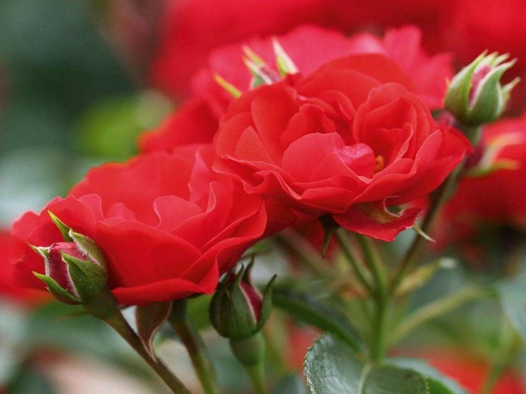 Rose 'Balou®' - sehr attraktive Rose, die sich durch leuchtend rote, volle Blüten auszeichnet, die den ganzen Sommer über bis zu den ersten Frösten am Strauch erscheinen. In der Reife erreicht die Pflanze eine Höhe von ca. 70 cm. Sie duftet angenehm, mit einer sinnlichen Mischung aus mehreren fruchtigen Noten. Sie duftet intensiv fruchtig, wobei sich mehrere Fruchtnoten sinnlich in ihrem Duft vermischen. Sie eignet sich sowohl für die Pflanzung im Beet als auch im Topf auf der Terrasse oder Veranda.