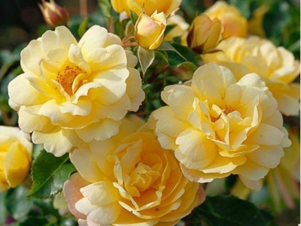 Rose 'Candela®' - gehört zu den modernen Polyantha-Sorten vom Typ niedriger Strauch- bis Bodendeckerrosen. Sie wurde von der bekannten deutschen Firma Rosen Tantau gezüchtet und gehört zu den Rosen, die für ihre ausgeprägte Widerstandsfähigkeit, gesunde Belaubung und lange Blütezeit geschätzt werden. Wächst kompakt, normalerweise bis zu einer Höhe von 50-80 cm und einer Breite von 60-80 cm, mit dichter Verzweigung und leicht bogenförmigen Trieben, die in der Pflanzung eine kohärente, regelmäßige Form bilden. Die Blätter sind kleiner, dunkelgrün, glänzend und behalten den ganzen Sommer über ein frisches Aussehen. Die Blüten haben einen Durchmesser von etwa 4-6 cm, sind honiggelb und erscheinen oft in reichen Büscheln. An den Rändern der Blütenblätter kann eine leichte rötliche Tönung auftreten. Der Duft ist leicht, zart süß. Die Blüte beginnt im Juni und dauert je nach Saison bis September oder Oktober an. Abgestorbene Blüten fallen von selbst sauber ab, was den Wartungsaufwand reduziert. Nach der Blüte kann sie kleine Hagebutten bilden, die Vitamin C enthalten und in Tees oder Herbstdekorationen verwendet werden. Die Sorte findet Anwendung in Vorgärten, an den Rändern von Staudenbeeten, in der Stadtbegrünung und als niedriger Rosensaum, wo vor allem die Wuchs-stabilität und der gute Gesundheitszustand geschätzt werden.