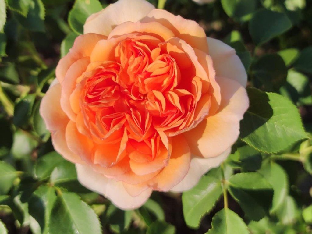 Rose 'Dame Judi Dench®' - schöne englische Strauchrose. Die Sorte erreicht eine Höhe und Breite von ca. 1,1–1,25 m. Die Blüten sind groß, tief aprikot-orange, die allmählich zu einem zarten cremefarben-aprikot Farbton verblassen. Die Blüten haben ein frisches Teearoma mit Noten von Gurke und Kiwi. Die Sorte blüht wiederholt von Juni bis zum ersten Frost. Die Rose hat eine ausgezeichnete Widerstandsfähigkeit gegen Schädlinge und Krankheiten. Die Sorte ist eine ausgezeichnete Wahl für Beete, als Solitärpflanze oder für Schnittblumen.