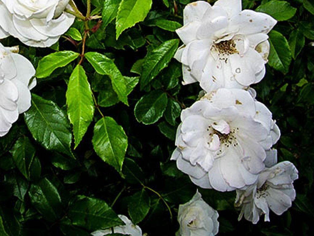 Rose 'Diamant®' - Bodendeckerrose, die etwa 60 cm hoch und 50 cm breit wird, kann auch in verschiedenen Gefäßen verwendet werden. Die Blütenstände sind reinweiß. Sie blüht wiederholt. Die Rose ist hochresistent gegen Frost und Krankheiten. Sie sieht sowohl in der Vase als auch im Beet gut aus. Sie ist sehr widerstandsfähig gegen Frost und Krankheiten. Geeignet für den Schnitt. Sie trägt die ADR-Auszeichnung.