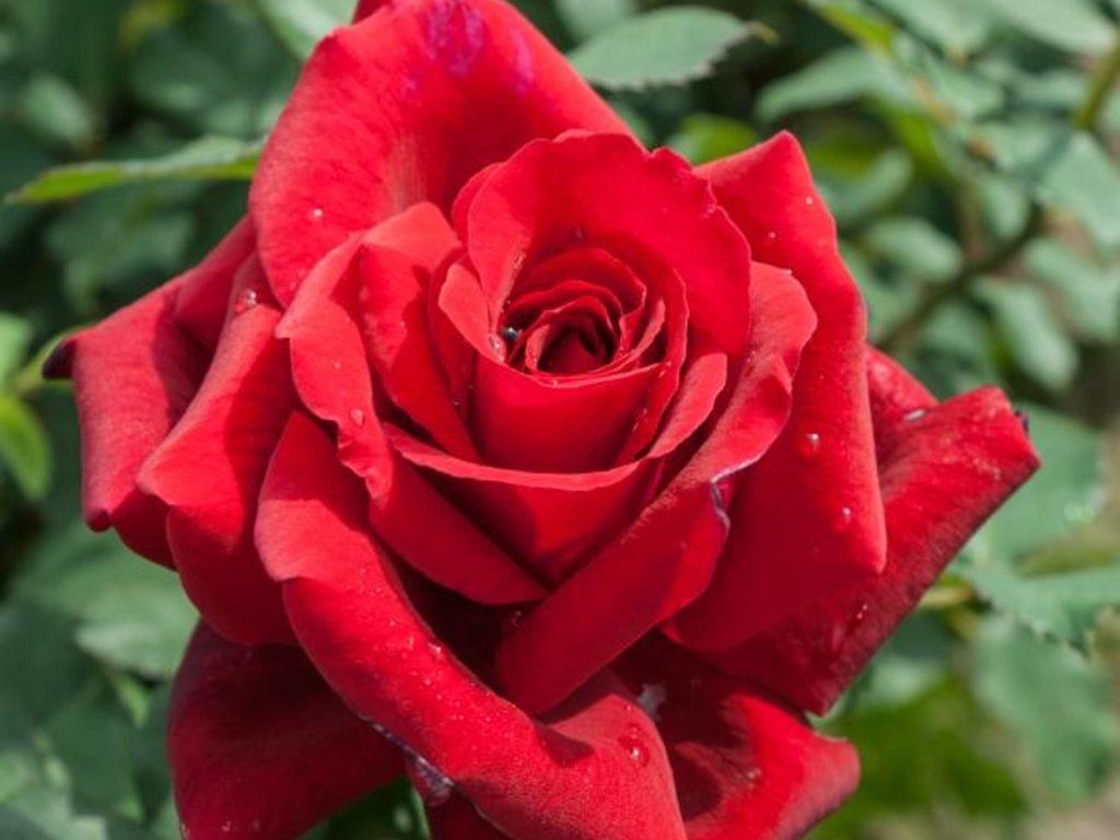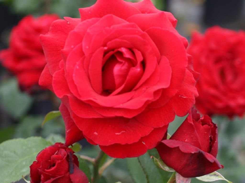 Rose 'Duftzauber 84®' - Teehybride, wächst 60-80 cm hoch. Sie bildet schöne aufrechte Büsche. Die Blüten sind tief samtig rot, blühen wiederholt und das von Juni bis Herbst. Sie zeichnet sich durch einen mittelstarken Duft aus, der süß-teeartig mit einem zarten fruchtigen Hauch ist. Sie ist gut beständig gegen große Hitze und gegen Frost. Dieser duftende Schatz sollte in keinem Garten fehlen.