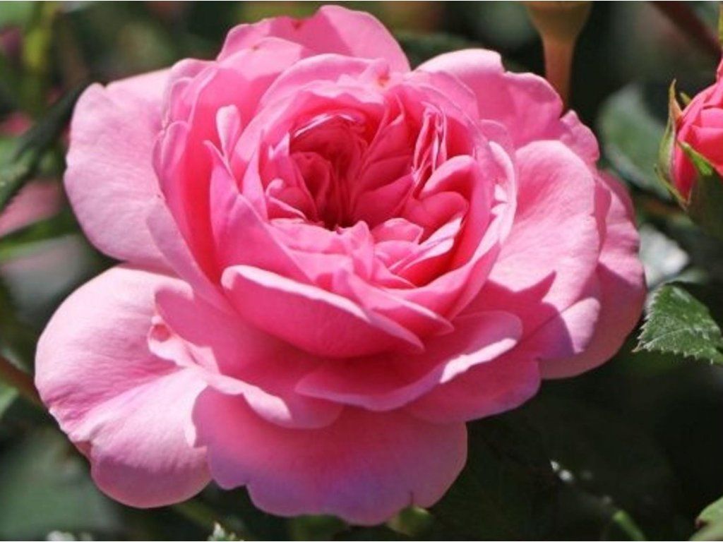 Rose 'Eva Starlet Rose®' - reich blühender Mini-Kletterrose. Wächst bis zu einer Höhe von 180 cm. Dichte, volle Blüten zeichnen sich durch ihre tiefrosa Farbe aus. Die Blätter sind dunkelgrün und bilden so einen intensiven Kontrast. Eignet sich auch für die Kultivierung in Gefäßen. Blüht wiederholt bis zum ersten Frost.