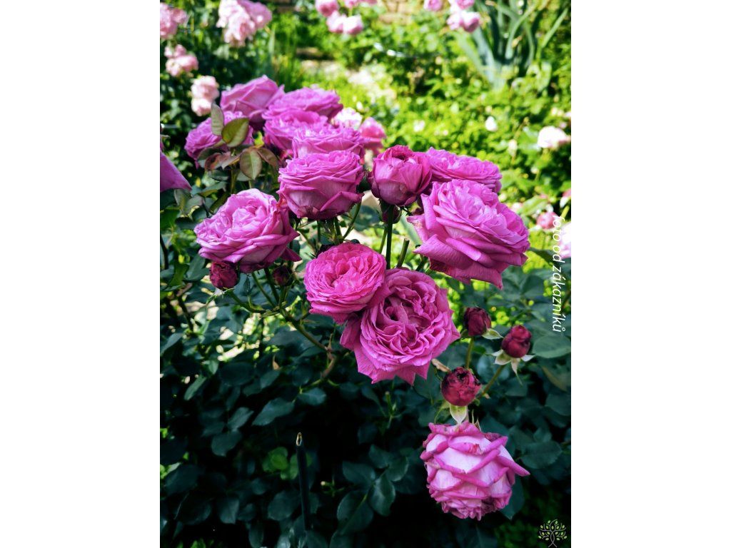 Rose 'Freifrau Caroline®' - eine romantische Rose mit voller Blüte und intensivem Duft. Zarte Blüten haben eine satte rosa-violette Farbe. Ihr Duft ist frisch und erinnert an die Luft nach einem Sommerregen, nach vollständiger Öffnung der Blüte geht er in einen zart-apfeligen Duft über. Blüht den ganzen Sommer über immer wieder. Das Laub ist dunkelgrün, glänzend und sehr widerstandsfähig gegen Pilzkrankheiten. Diese Rose ist eine sogenannte englische Rose mit ausgezeichneter Gesundheit und reicher Blüte. MSie können sie sowohl im Beet als auch im Topf auf der Terrasse anbauen.