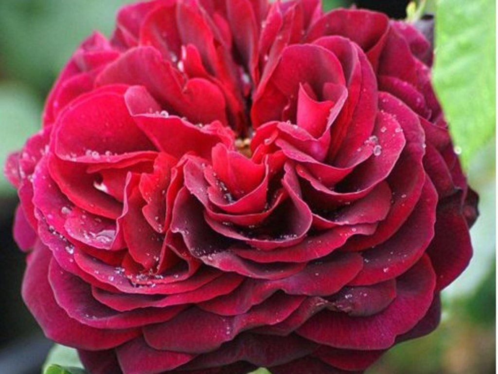 Rose 'Gräfin von Hardenberg®' - eine Strauchrose mit vollen Blüten in samtigen Schattierungen von burgunderrot. Die Farbe ist an den Rändern dunkler und hellt zur Mitte hin allmählich auf. Sie duftet intensiv. Sie ist remontierend. Wächst auf eine Höhe von 100-130 cm.