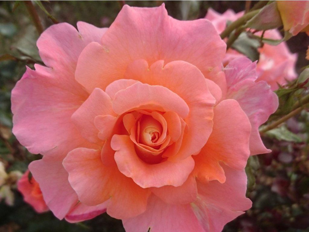 Rose ´Inspiration®´ - attraktive Teerose, die eine Höhe von ca. 75 cm erreicht. Die Rose blüht wiederholt von Juni bis Oktober. Die Blüten bestechen durch warme, orange bis rosa Farbtöne und zeichnen sich durch ihre lange Haltbarkeit aus. Die Blätter sind tiefgrün, glänzend, fest mit gezackten Rändern. Geeignet zum Schnitt für die Vase. Ideal für Staudenbeete, Kübel und Tröge, macht sie sich auch als Solitärpflanze wunderbar.