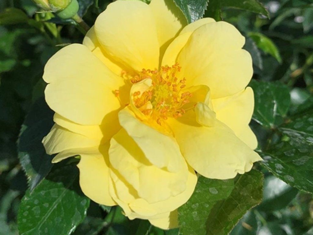 Rose 'Loredo®' - Bodendeckerrose, die eine Höhe von etwa 60-70 cm erreicht. Die Rose blüht wiederholt von Juni bis Oktober. Mittelgroße Blüten zeichnen sich durch gelbe Farbtöne aus. Die Blätter sind fest, glänzend, dunkelgrün gefärbt und haben einen gezackten Rand. Sie ist gut frost- und krankheitsresistent. Dieser bezaubernde Kultivar sollte in keinem Garten fehlen. Sie besticht auf den ersten Blick.