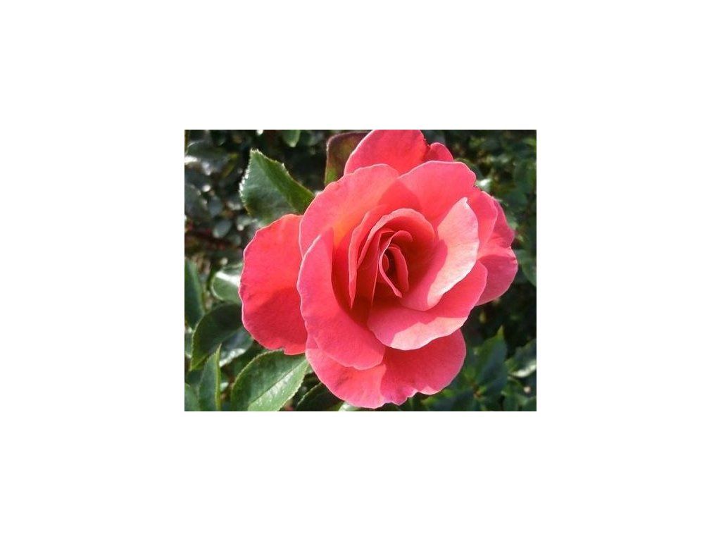 Rose ´Melusina®´ - eine Sorte mit lachs-orangefarbenen Blüten, die außen von einer weißen Linie begrenzt sind. Sie wächst auf eine Höhe von 70-100 cm.