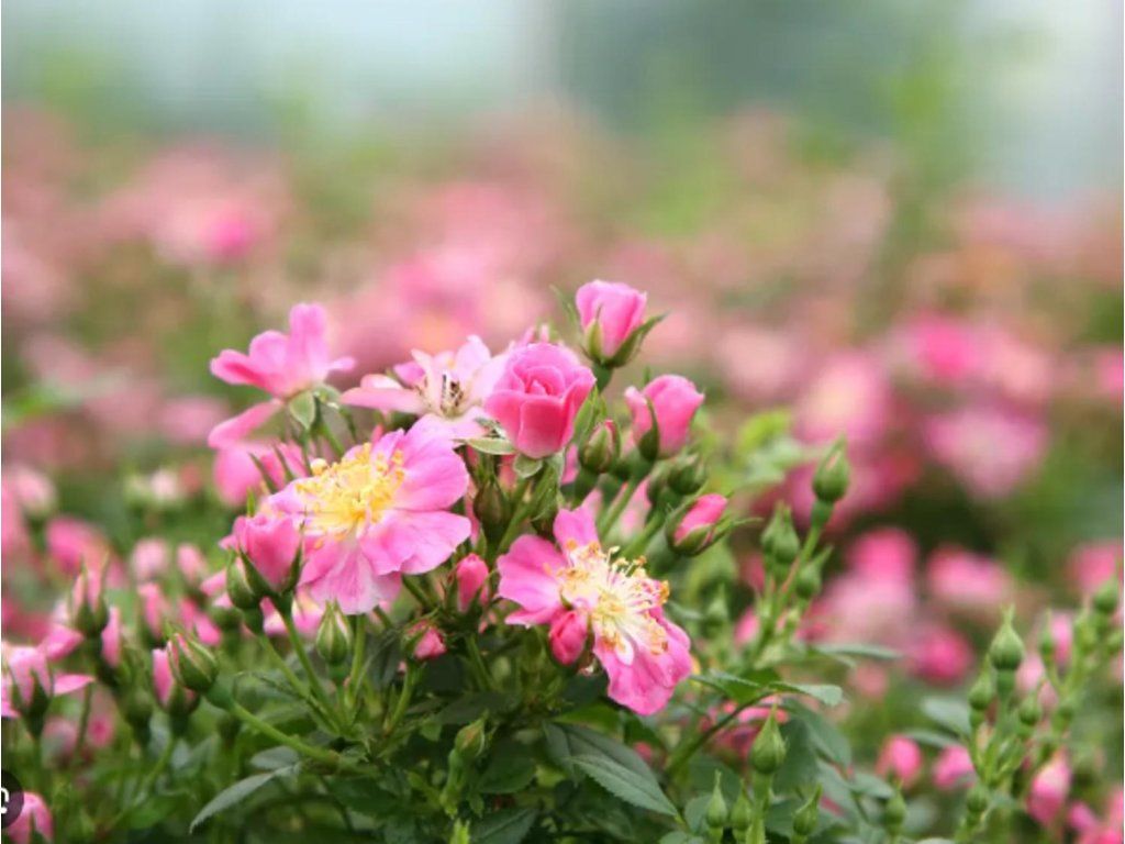 Rose 'Mini Pinkie' - eine beliebte Rosensorte, die sich sowohl für den Freilandanbau als auch für den Anbau in Töpfen eignet. Die Blüten sind rosa und duftend mit leuchtend gelben Staubgefäßen. Es handelt sich um eine niedrige Pflanze, die etwa 40-50 cm hoch wird. Die Blätter sind klein und grün. Die Pflanze eignet sich zur Begrünung von Hängen oder kahlem Boden oder zur Ausfüllung von Beeträndern. Insgesamt ist die Rose 'Mini Pinkie' eine gute Wahl für Gärten und verleiht ein romantisches und schönes Aussehen.