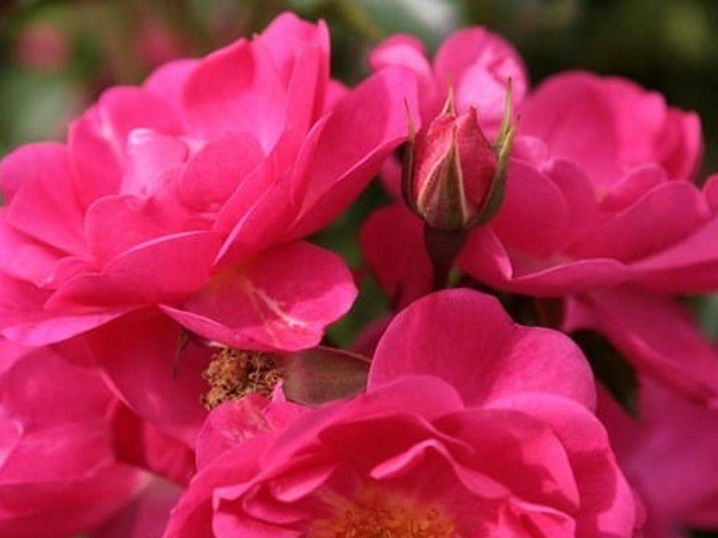 Rose 'Neon®' - Floribundarose, die etwa 60 cm hoch und etwa 50 cm breit wird. Die Rose blüht wiederholt von Juni bis Oktober. Der ganze Strauch ist buchstäblich mit einer Blütenflut übersät. Sie haben eine neonfarbene, kräftig rosa Färbung. Die Blüten sind halbgefüllt. Die Sorte ist sehr gut resistent gegen Frost und Krankheiten. Sie trägt die ADR-Auszeichnung. Sie können die Rose auch im Topf anbauen. Insgesamt ist die Rose ein schönes Element für Gärten, sie bringt Farbe und ein romantisches Aussehen in jeden Garten.