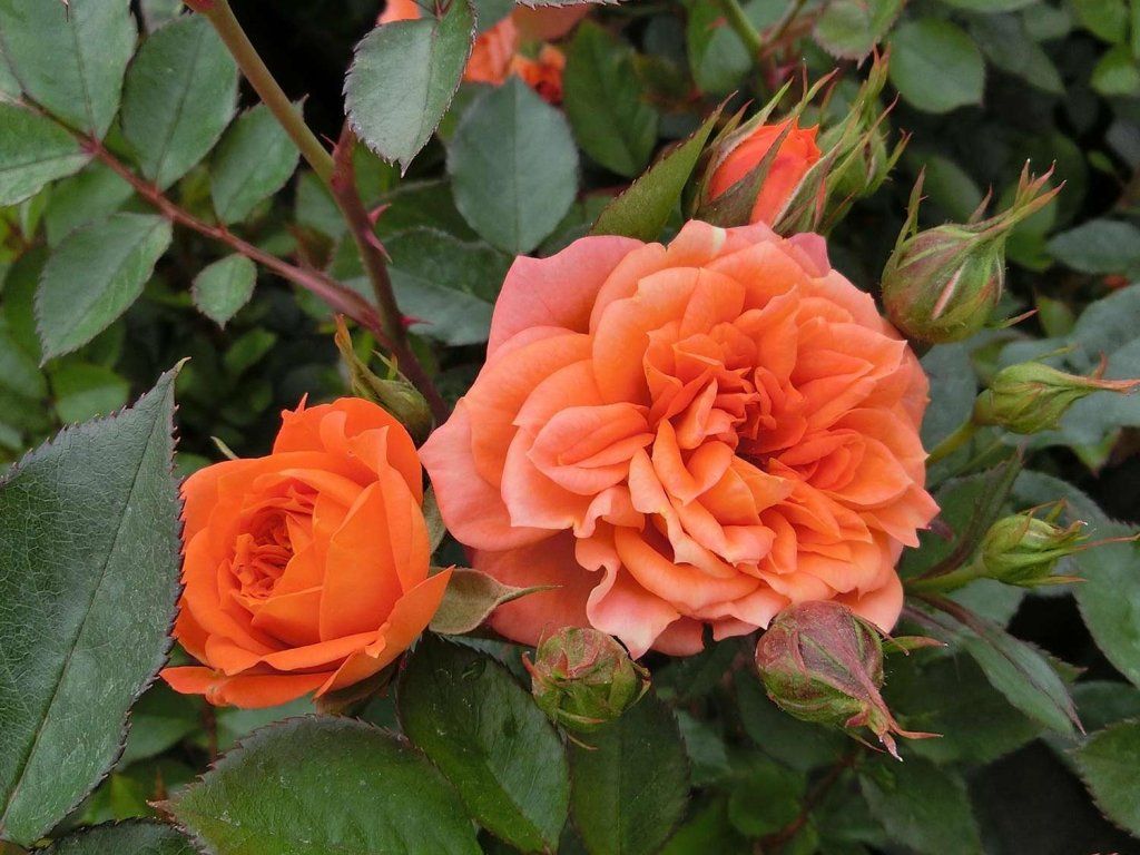 Rose 'Ninetta®' - Zwergrose, die nur 30-50 cm hoch wird. Der Blütenstand erscheint wiederholt von Juni bis September. Die Blüten, die 2-4 cm groß sind, bestechen durch ihre aprikot-orange. Die Blätter sind dunkelgrün, glänzend mit gesägtem Rand. Sie ist gut frost- und krankheitsresistent. Ideal für Staudenbeete, Kübel, Steingärten, aber auch als Solitärpflanze kommt sie wunderschön zur Geltung.