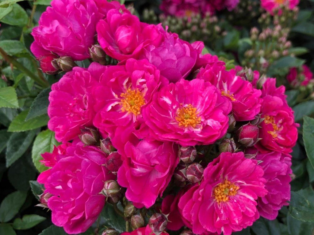 Rose 'Perfumy Siluetta®' - eine kletternde und wiederholt blühende Rose in tiefrosa bis violetten Tönen. Wächst bis zu 2,5 Meter hoch. Sie ist sehr widerstandsfähig gegen Frost und Krankheiten. Blüht im Juni und Juli, wenn die blauvioletten Blüten sichtbar sind.Sie ist ideal zum Beranken von Pergolen, Bögen oder Spalieren. Sie ist ideal zum Beranken von Pergolen oder Bögen. in heller, sonniger Farbe