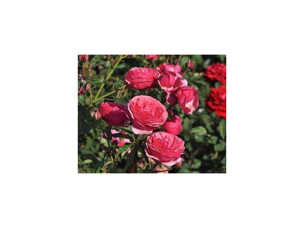 Rose ´Pink™ VAZA®´ - eine interessante Strauchrose mit flach geformten, großen, gefüllten Blüten in einem ausgeprägten Rosaton. Sie wächst auf eine Höhe von 40-50 cm heran. Der Duft ist ausgeprägt. Der Strauch ist sehr gut resistent gegen gängige Rosenkrankheiten.