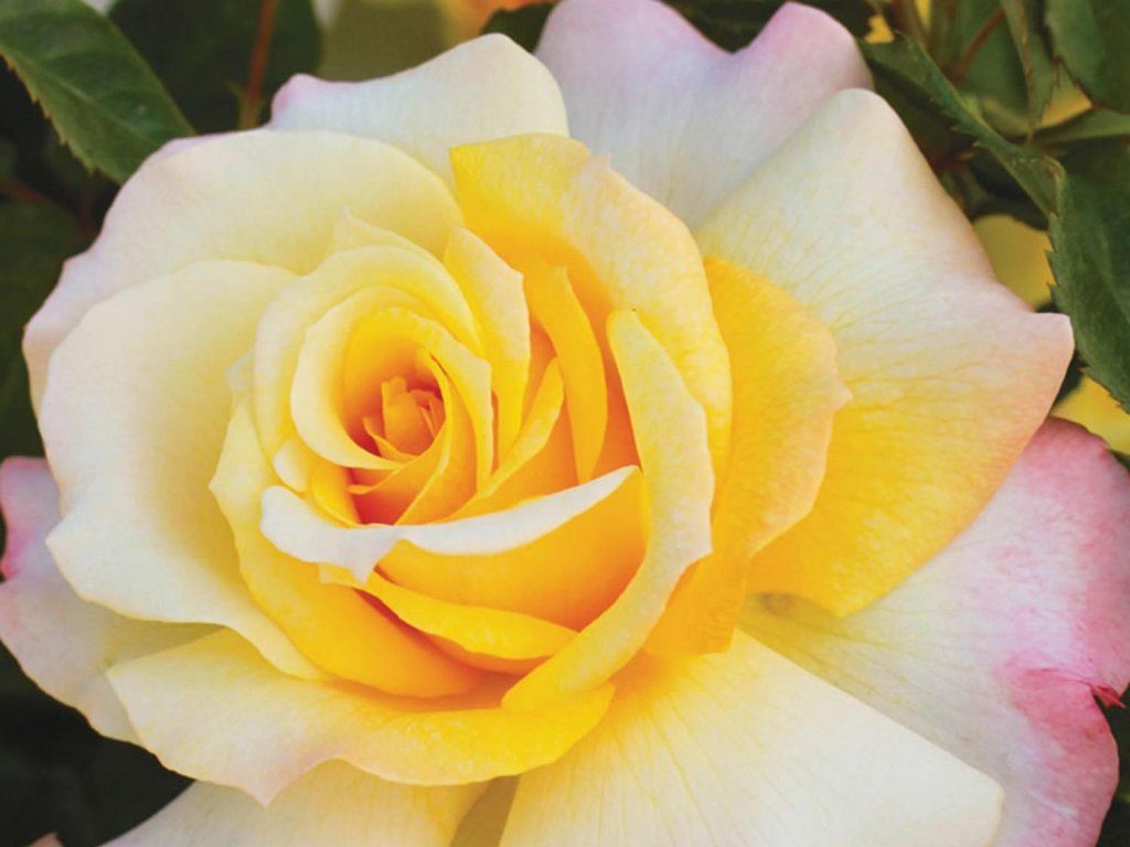 Rose 'Sunny Sky®' - eine großblumige Strauchsorte, die eine Höhe von 100 - 120 cm und eine Breite von ca. 60 cm erreicht. Sie blüht mit voll gefüllten Blüten in pastellgelber Farbe mit helleren Rändern. Sie erscheinen wiederholt von Juni bis Oktober. Der Duft erinnert an eine Kombination aus Frucht und Honig. Sie ist sehr gut frost- und krankheitsresistent. Sie hat die ADR-Anerkennung erhalten. Eine ideale Rose für größere Beete.