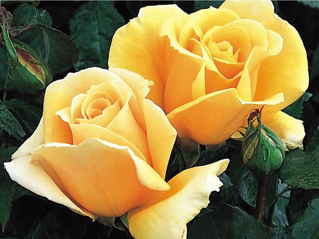 Rose 'Sunshine Lady' - klassische Beetrose, Strauchrose. Aus schlank-länglichen Knospen entwickeln sich leuchtend gelbe Blüten, die stellenweise einen hellrosa Hauch aufweisen. Eine bezaubernde Wahl für jeden Garten.