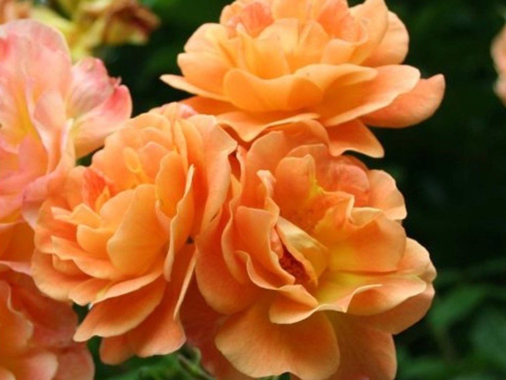 Rose 'Westerland®' - eine üppig wachsende, klassische Parkrose, die bis zu 150 cm hoch wird. Die Blüten sind auffällig und erhellen mit ihrer saftig-orangen Farbe jeden Garten. Der Duft ist intensiv und erinnert an Zitrusfrüchte.