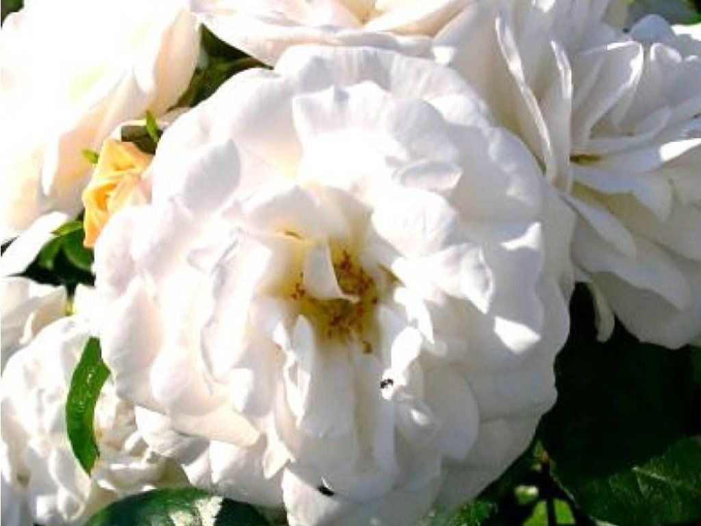 Rose 'White Diamond' - wunderschöne niederländische Sorte, die bis zu einer Höhe und Breite von 80-100 cm wächst. Sie hat eine Fülle von funkelnd weißen Blüten mit einem zarten, süßen Duft. Die Blüten erscheinen von Juni bis September. Sie werden durch glänzende, feste Blätter in dunkelgrüner Farbe ergänzt. Die Sorte eignet sich auch für die Pflanzung in niedrige, blühende Hecken.