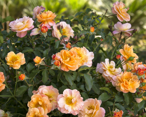 Möchten Sie den ganzen Sommer über eine Fülle von Farben? Diese Rosen blühen in reichen Büscheln (mehrere kleinere Blüten an einem Stiel). Sie sind sehr widerstandsfähig, vital und eignen sich hervorragend für flächige Pflanzungen oder als farbige Wegränder.