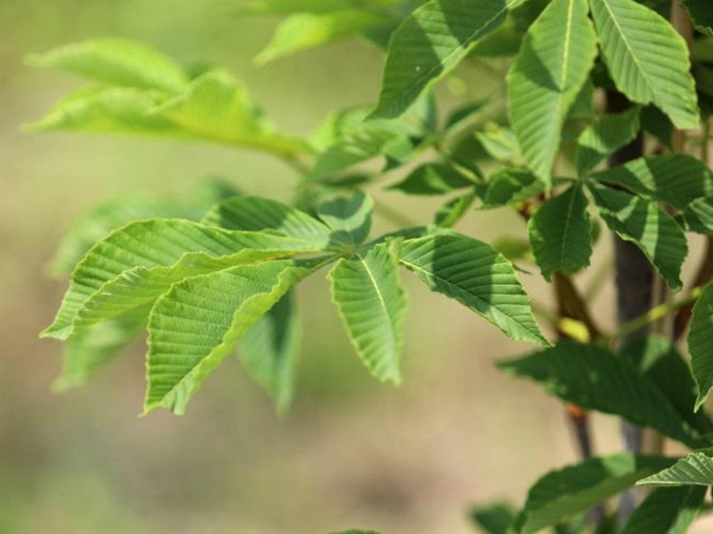 Rosskastanie x hemiacantha - hoher, laubabwerfender Baum, der eine Höhe von 18-20 m und eine Breite von 12-15 m erreicht. Es handelt sich um eine Hybridart, die durch die Kreuzung von Rosskastanien hippocastanum x turbinata entstanden ist. Bereits junge Setzlinge haben sehr große Blätter in klassischer grüner Farbe. Die Frühlingsblüten sind ebenfalls groß und haben eine cremeweiße Farbe. Im Herbst bilden sich Früchte voller Samen.