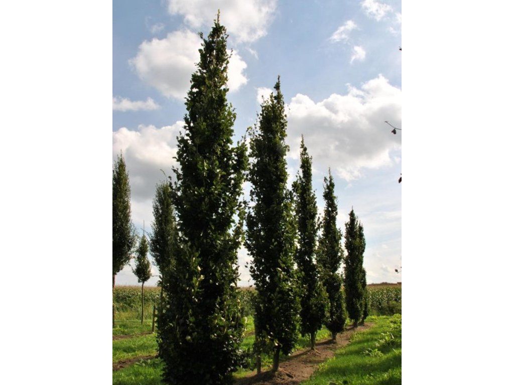 Rotbuche 'Anniek' - Die Sorte 'Anniek' entstand als Selektion aus einem Sämling und gehört zu den schmalen, säulenförmigen Formen für platzbeschränkte Pflanzungen. Sie bildet mehrere aufwärts gerichtete Hauptäste und eine dichte Seitenverzweigung, die tief am Boden ansetzt, sodass die Silhouette regelmäßig und vorhersehbar ist, ähnlich wie beim Kultivar 'Dawyck'. Die Blätter sind elliptisch, 4–10 cm lang, im Frühjahr glänzend dunkelgrün, im Sommer matter. Im Herbst verfärben sie sich in Gelbtöne. Trockene Blätter verbleiben oft über den Winter an den Ästen und verstärken so visuell die säulenförmige Form auch in der laubfreien Zeit. Im Mai erscheinen unscheinbare Blüten, sie blüht weniger üppig als die Art, daher werden Bucheckern meist nur vereinzelt gebildet. Dank der dichten Verzweigung wirkt die Krone auch ohne regelmäßiges Beschneiden kompakt. Im Garten fungiert er als schmaler vertikaler Akzent für Vorgärten, entlang von Wegen und in Alleen. Er kontrastiert gut mit dunklen Nadelgehölzen und immergrünen Sträuchern; Farne, Funkien, Purpurglöckchen und Frühlingszwiebeln, oder Gräser für sonnigere Standorte bewähren sich im Unterwuchs.