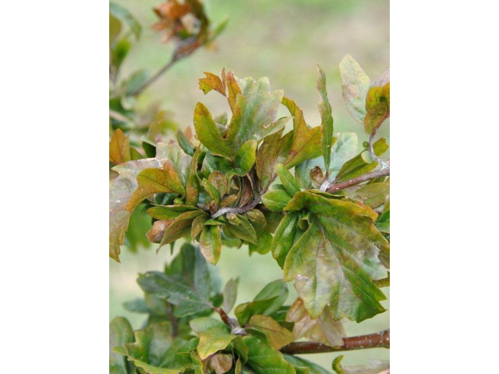 Rotbuche 'Brathay Purple' - ein kleiner Baum mit einer ausgeprägt unregelmäßigen, breiten und vasenartigen Krone, der durch sein einzigartiges Aussehen besticht. Langsames Wachstum und geringe Höhe von 3-6 Metern machen ihn zu einem idealen Kandidaten für kleinere Gärten und Zierpflanzungen. Seine ausgeprägten weinroten Blätter sind charakteristisch für 'Brathay Purple'. Die Blätter sind relativ klein, gebogen und unregelmäßig fiederspaltig, was ein anmutiges und dekoratives Element im Gartendesign darstellt. Die beste Blattfärbung wird an einem sonnigen Standort erzielt, wo sie Schattierungen von braunrot bis dunkel purpurbraun erreichen kann. Dieser Kultivar zeichnet sich durch lange, überhängende Äste aus, die auf natürliche Weise Eleganz erzeugen, ohne dass ein Leittrieb ausgegeizt werden muss. Er stammt aus der Selektion der bronzefarbenen violetten Variante 'Cristata' und hat seinen Ursprung auf dem Friedhof in der kleinen Stadt Brathay, nördlich von Windermere in England. 'Brathay Purple' gedeiht gut in gut durchlässigem, humosem Boden, der nicht zu feucht ist. Dieser Kultivar bevorzugt volle Sonne und ist mäßig windresistent. Seine Schönheit und Einzigartigkeit machen ihn zu einer ausgezeichneten Ergänzung für Gartenkompositionen, insbesondere für diejenigen, die einen pflegeleichten und attraktiven Baum mit einem ausgeprägten Farbelement suchen.