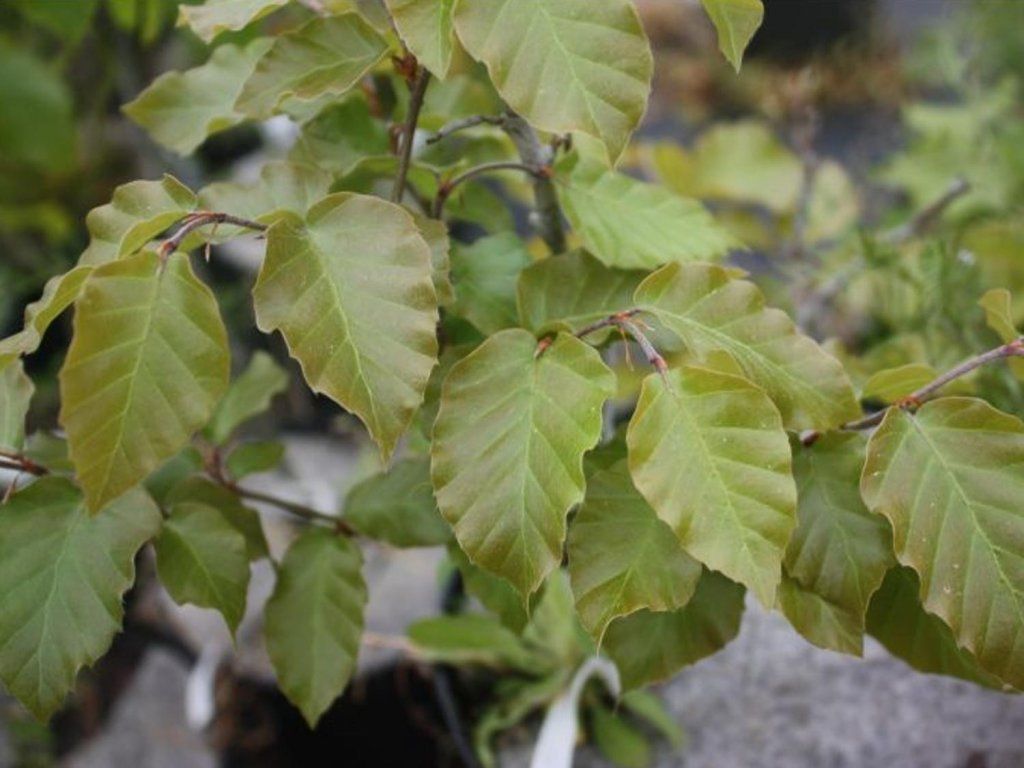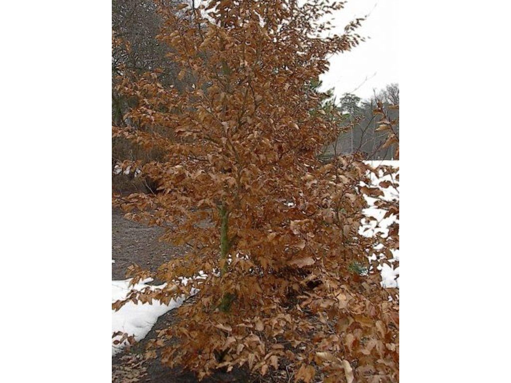 Rotbuche ist ein kräftiger, laubabwerfender Laubbaum aus der Familie der Buchengewächse (Fagaceae) heimisch in Europa. Dieser Baum erreicht eine Höhe von bis zu 30-40 m, hat eine breite Krone und bildet einen charakteristischen, glatten Stamm. Seine Blätter sind oval, dunkelgrün und haben gezackte Ränder. Buchen haben charakteristische Blütenstände in Form von hängenden Kätzchen, die im Frühling erscheinen. Die Früchte sind Bucheckern, dreieckige Nüsse, die von einer stacheligen Hülle umgeben sind. Der Anbau der Rotbuche erfordert einen sonnigen Standort und durchlässigen Boden, gedeiht aber auch im Halbschatten. Sie bevorzugt feuchte Böden und ist relativ unempfindlich gegenüber Luftverschmutzung. Sie ist frosthart und verträgt verschiedene klimatische Bedingungen gut. In der Gartengestaltung wird die Rotbuche auf verschiedene Weise eingesetzt. Dank ihres eleganten Aussehens und Wachstums wird sie oft als Solitär in Parks und Gärten verwendet. Buchenalleen sind auch für ihr ästhetisches Aussehen und die Schaffung von schattigen Gängen beliebt. In der Gartengestaltung wird sie auch als Teil von gemischten Waldflächen eingesetzt, wo sie mit ihrem charakteristischen Laub und ihrer Form zu einer natürlichen Atmosphäre beiträgt. Sie hat eine Reihe von sehr attraktiven Sorten, die sich in Farbe und Form des Laubes sowie in Größe und Form unterscheiden und somit nicht nur in großen Gartenanlagen, sondern auch in kleineren Gärten verwendet werden können. Die Rotbuche bevorzugt durchlässige, nährstoffreiche Böden mit guter Feuchtigkeit und einem mäßigen Kalkgehalt. Am besten geeignet sind Standorte von voller Sonne bis Halbschatten; sie ist empfindlich gegenüber plötzlichem Frost und direkter Sonneneinstrahlung, die ihre Rinde schädigen können. Sie gedeiht bei höherer Luftfeuchtigkeit und es wird empfohlen, sie eher auf größeren Rasenflächen zu pflanzen. Es ist wichtig zu beachten, dass die Rotbuche dazu neigt, relativ weitläufig zu wurzeln und unterirdische Strukturen beschädigen kann.