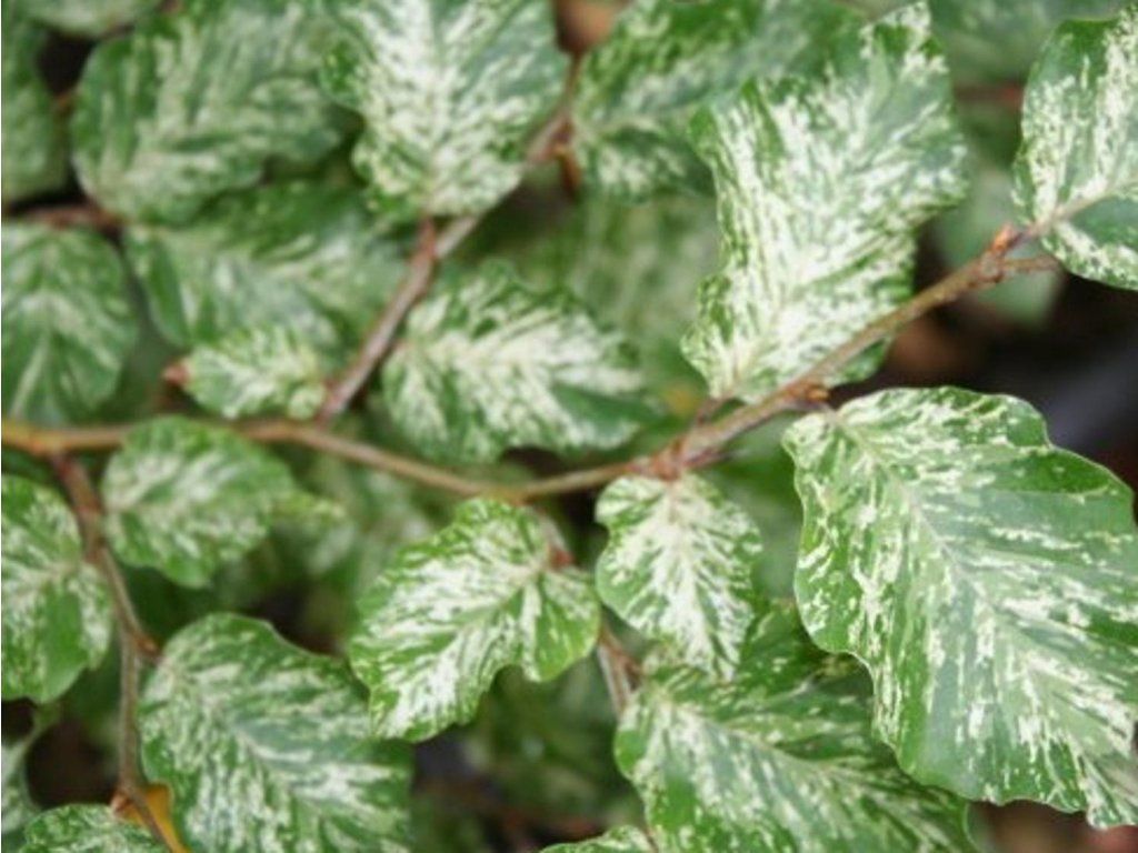 Rotbuche 'Franken' - eine elegante und langsam wachsende Pflanze, die mit ihrem einzigartigen Aussehen bezaubert. Sie erreicht eine Höhe von etwa 3 Metern und hat charakteristische panaschierte Blätter mit einem stärker gewellten und gezackten Rand, was dem Garten ein feines und attraktives Element verleiht. Junge Blätter von 'Franken' sind schön hell cremeweiß gefleckt, was einen interessanten Kontrast zum Hintergrund grüner Blätter bildet. Im Frühling können sie manchmal reinweiß mit kleinen grünen Flecken sein. Später verfärben sich die Blätter allmählich grün, sind aber immer noch leicht cremig bis grün-weiß marmoriert, was der Pflanze einen einzigartigen visuellen Eindruck verleiht. Diese Sorte wurde aus einem ausgewählten Sämling von Fagus sylvatica 'Marmorata' gezüchtet, und ihre weiße Marmorierung auf den Blättern ist sehr attraktiv und sogar besser als bei ihrer Elternpflanze. Junge Pflanzen haben grüne Blätter, die leicht mit weißen Flecken gesprenkelt sind, was eine zusätzliche Schicht bunter Optik verleiht. Diese Sorte eignet sich auch für die Kultivierung in großen Behältern, was ihre Platzierung auf der Terrasse oder dem Balkon ermöglicht. Angesichts der hell gefleckten Blätter wird jedoch empfohlen, 'Franken' an halbschattigen Standorten zu kultivieren, wo sie mit ihrem schönen und bunten Aussehen voll zur Geltung kommen kann. Alles in allem ist die Buche 'Franken' eine ausgezeichnete Wahl für diejenigen, die eine bezaubernde Pflanze mit einem einzigartigen Aussehen suchen, die mit ihrer bunten Färbung und ihrem langsamen, eleganten Wachstum belebt.