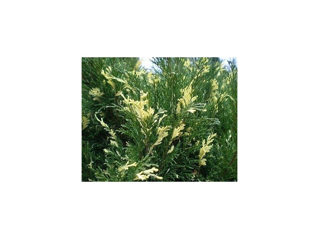 Sadebaum 'Variegata' - eine niedrig wachsende, breit ausgebreitete Sorte des Sadebaums, die sich durch eine interessante panaschierte Benadelung auszeichnet. Dieses attraktive Nadelgehölz kombiniert die Anspruchslosigkeit und Widerstandsfähigkeit der Ursprungsart mit einem dekorativen Aussehen, das es besonders in Zierpflanzungen hervorhebt. Die Pflanze bildet einen niedrigen, dichten Strauch, der eine Höhe von etwa 0,5 Meter und eine Breite von bis zu 1,5 bis 2 Meter erreicht. Die Äste breiten sich niederliegend über den Boden aus und bedecken so gut die Fläche. Die Nadeln sind fein, teilweise schuppen- und nadelförmig, dunkelgrün gefärbt, jedoch mit unregelmäßigen cremeweißen bis gelblichen Flecken oder Trieben, die ein kontrastreiches und buntes Aussehen erzeugen. Diese Sorte ist eine ausgezeichnete Wahl für Steingärten, Bodendeckerpflanzungen, zur Säumung von Beeten oder als kontrastierendes Element zwischen dunkleren Nadelgehölzen. Lässt sich gut mit Steinen und Stauden kombinieren. Sein niedriger und ausladender Habitus hilft, Erosion und Unkrautwuchs zu verhindern. Wie die Grundart ist er giftig, daher muss der Standort unter Berücksichtigung der Sicherheit von Kindern und Haustieren gewählt werden.