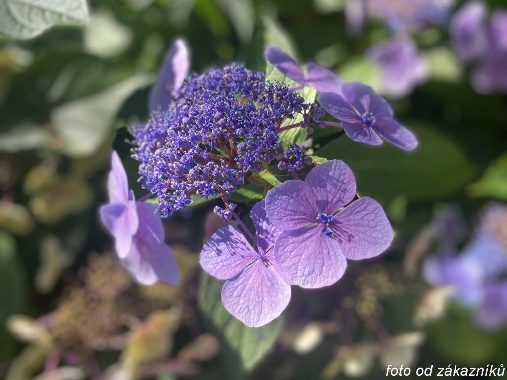 Sägeblatthortensie MAGIC SEDUCTION 'Annie's Blue' - bildet einen sehr kompakten, kugelförmigen Strauch, der bis zu einer Höhe und Breite von 1,2 m wächst. Starke Stiele tragen flache Blütenstände (blühen am zweijährigen Holz), wobei die sterilen Blüten sehr groß sind, eine violett-blaue Farbe haben und in saurerem Boden mehr blau gefärbt sind. Fertile Blüten sind ebenfalls blau. Sie erscheinen ab Juni und blühen den ganzen Sommer über. Die Blätter sind grün und verfärben sich im Herbst gelb. Dieser Strauch kommt als Solitär hervorragend zur Geltung, findet aber auch im Garten, auf Beeten und auf der Terrasse seinen Platz. Insgesamt ist die Hortensie ein beliebtes Element für Gärten und verleiht jedem Garten ein zartes und romantisches Aussehen.