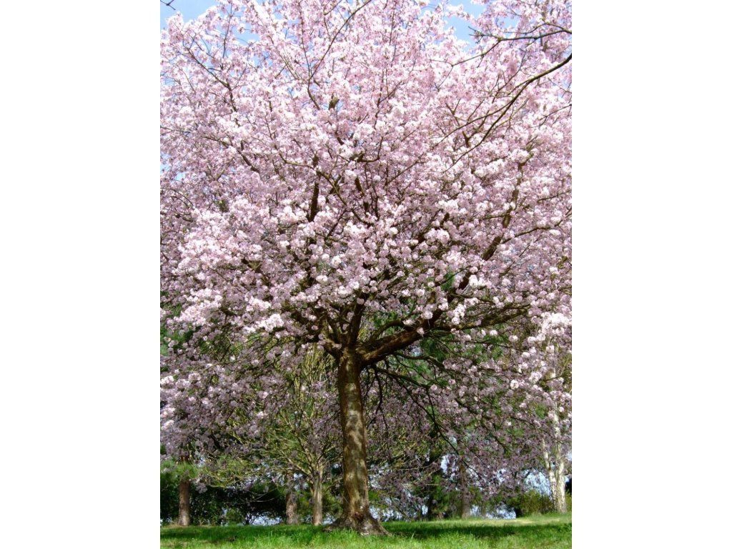 Sakura 'Accolade' - eine der schönsten und beliebtesten Zierkirschen, geschätzt für ihre frühe und sehr reiche Blüte, zartrosa Blüten und ihren eleganten Habitus. Sie gehört zu den zuverlässigen und widerstandsfähigen Kultivaren, die für Stadtgärten, Parks und kleinere Gärten geeignet sind. Sie wächst als mittelgroßer Baum, der normalerweise eine Höhe von 4 bis 6 Metern und eine ähnliche Breite erreicht, mit einer breit ausladenden, leicht überhängenden Krone. Der Habitus ist luftig und wirkt besonders während der Blütezeit sehr zart. Die Blüten sind die Hauptzierde dieser Sakura. Sie erscheinen sehr früh im Frühling, oft schon im April, manchmal auch früher, je nach Wetterlage. Die Blüten sind halbgefüllt, zartrosa, mit einem Durchmesser von 3–4 cm, in reichen Büscheln angeordnet. Sie wirken zart und romantisch, und die Blüte ist tatsächlich sehr üppig – der ganze Baum ist buchstäblich mit Blüten bedeckt. Die Blüten sind auch nektarreich und ziehen Insekten an. Die Blätter erscheinen erst nach der Blüte, sind hellgrün, werden später dunkler und färben sich im Herbst gelb bis orange, sodass der Baum auch im Herbst dekorativ ist. Die Rinde ist glatt, bräunlich, mit typischen Lentizellen, wie bei den meisten Zierkirschen. Sie ist voll frosthart, sehr zuverlässig und widerstandsfähig gegen gängige Krankheiten. Sie eignet sich als Solitärpflanze für Vorgärten, kleinere Gärten, an Wege oder an Wasserelemente. Sie zeichnet sich auch in Allee-Pflanzungen aus und ist auch für städtische Umgebungen geeignet, wo sie Luftverschmutzung gut verträgt.