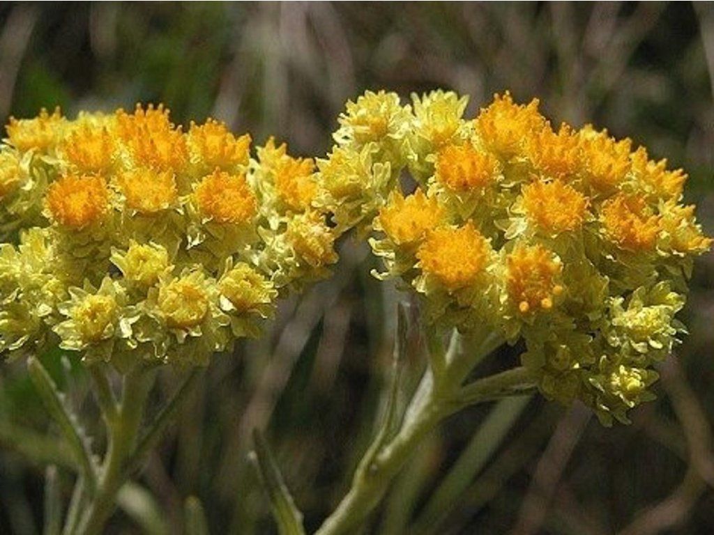Sand-Immergrün - eine mehrjährige, aufrechte Pflanze, die eine Höhe von etwa 35 cm erreicht. Der Blütenstand besteht aus kleinen Köpfchen von 6 bis 7 mm Breite, die eine dichte und große endständige Rispe bilden. Die Hochblätter sind goldgelb bis orange. Benötigt einen sonnigen Standort und ärmeren, trockeneren Boden. Eine sehr dekorative Pflanze, die als Strohblume verwendet wird, aber auch in der Volksmedizin.