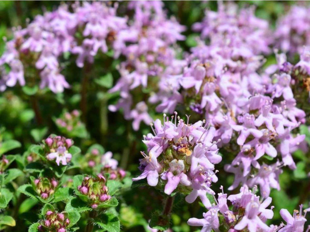 Kultivierung: Für die Kultivierung bewährt sich volle Sonne am besten, da sie kompaktes Wachstum und reiche Blüte fördert. Der Boden sollte leicht, gut durchlässig, sandig bis steinig sein, mit einem neutralen bis leicht alkalischen pH-Wert von etwa 6,5-7,5. Eine gute Drainage ist wichtig, insbesondere im Winter, wenn länger anhaltende Staunässe die Pflanzen schädigen kann. Die Bewässerung ist nach der Wurzelbildung minimal, Thymian verträgt Trockenheit sehr gut. Eine Düngung ist in der Regel nicht erforderlich, höchstens in kleinen Mengen im Frühjahr. Nach der Blüte kann der Bewuchs leicht zurückgeschnitten werden, was die Verdichtung und Beibehaltung der niedrigen Form fördert. Die Frosthärte reifer Pflanzen liegt bei bis zu -25 °C, was eine problemlose Überwinterung unter unseren Bedingungen ohne Winterschutz ermöglicht. Die Pflanzung erfolgt meist von März bis Oktober mit Abständen von etwa 20-25 cm. Dies entspricht etwa 9-12 Pflanzen pro m². Die Pflanze ist im Allgemeinen resistent gegen Krankheiten und Schädlinge und gehört zu den sehr zuverlässigen Bodendecker-Stauden.