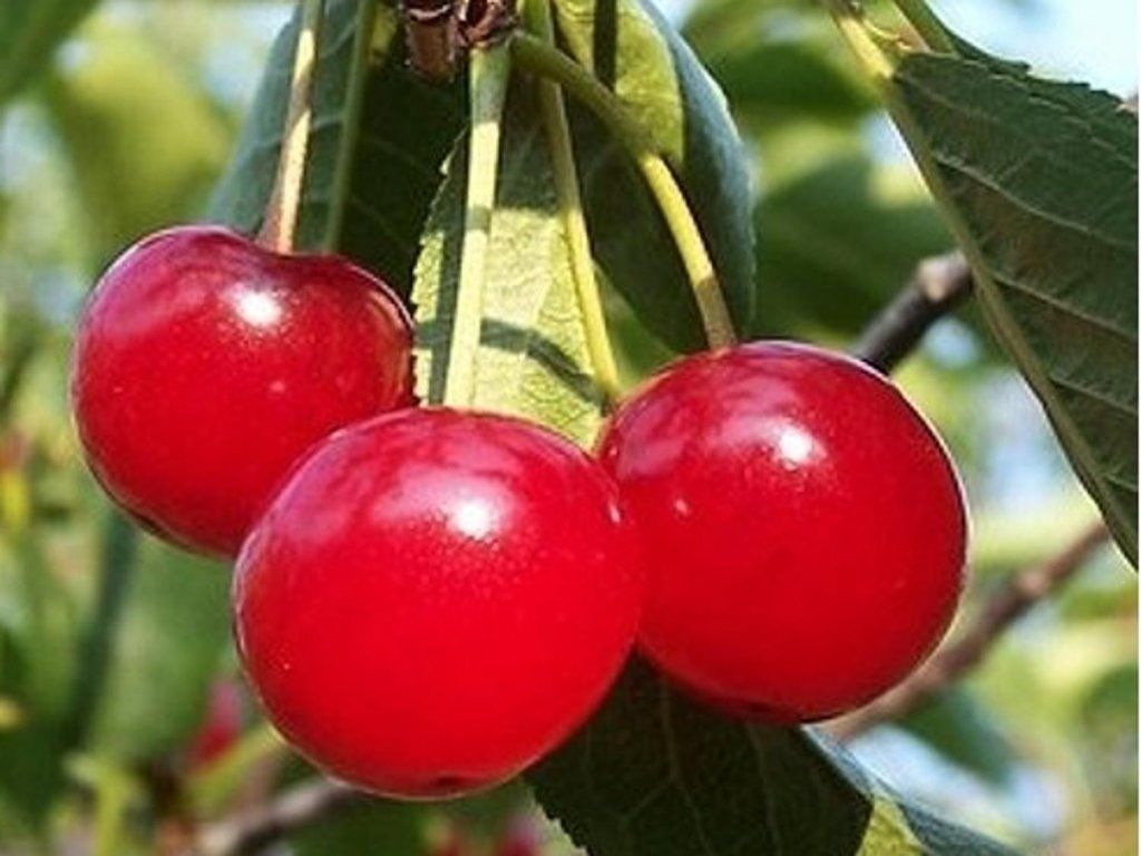 Sauerkirsche 'Galena' – es handelt sich um eine mitteltragende Sauerkirsche. Sie ist nicht anfällig für Krankheiten und gut frostbeständig. Die Früchte sind größer, kugelförmig und abgeflacht. Die Schale ist leuchtend rot. Das Fruchtfleisch ist gelblich, weich und saftig. Der Geschmack ist süß und enthält einen höheren Zuckergehalt. Der Saft ist farblos und der Kern ist größer. Der Stiel ist mittellang. Die Früchte werden Ende Juni und Anfang Juli geerntet.