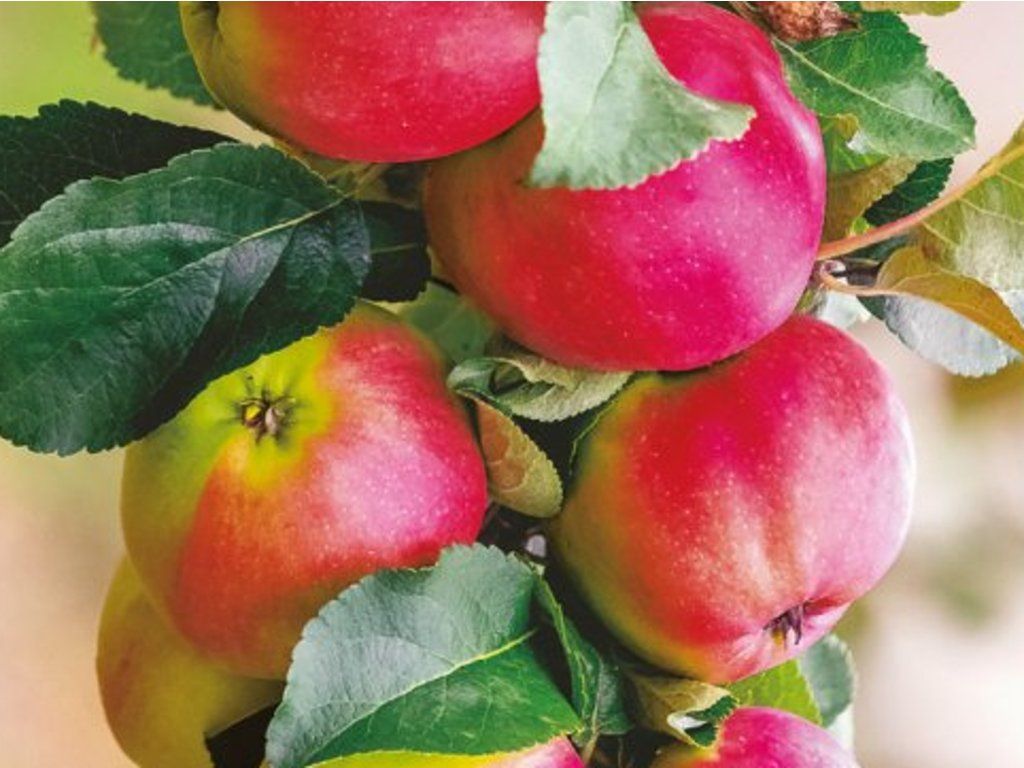 Apfel 'Slendera' - sehr schmackhafter Säulenapfel mit starkem Wuchs, resistent gegen Schorf. Hochertragreich, reift Anfang Oktober, Genussreife zu Weihnachten. Kann bis Februar gelagert werden. Die Früchte sind groß, konisch geformt. Die Grundfarbe der Frucht ist grün, die Deckfarbe ist rot, flächig verwischt. Das Fruchtfleisch ist weiß, mittelfest. Die Schale ist dick, glatt, mittel bereift, ohne Rost.