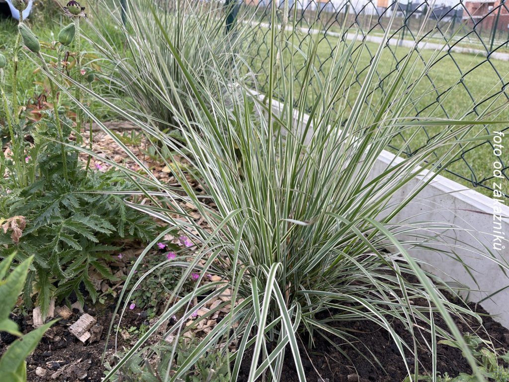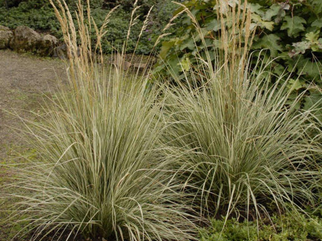 Reitgras 'Overdam' - eine ausdauernde Grasart, die etwa 130 cm hoch wird und vor allem durch ihre dekorativen Blätter und ihren eleganten Wuchs besticht. Die Blätter sind grün mit einem zarten, cremefarbenen Rand, was der Pflanze einen subtilen Kontrast und eine interessante Textur verleiht. Von Juli bis August erscheinen über den Blättern schmale, aufrechte Blütenähren mit braunen Blüten, die zart, aber gleichzeitig ausdrucksstark wirken und in der Gartengestaltung Aufmerksamkeit erregen. Dank ihres aufrechten und kompakten Wuchses ist das Reitgras ideal als Solitärpflanze, die ein interessantes vertikales Element bildet, aber auch in Gruppenpflanzungen, Staudenbeeten, Steingärten oder verschiedenen Trögen und Gefäßen gut zur Geltung kommt. Der Vorteil der Sorte ‘Overdam’ ist ihre Anspruchslosigkeit, ihr nicht-invasiver Wuchs und das Fehlen von Ausläufern, was sie zu einer pflegeleichten Grasart macht, die auch für kleinere Gärten und präzise geplante Pflanzungen geeignet ist.