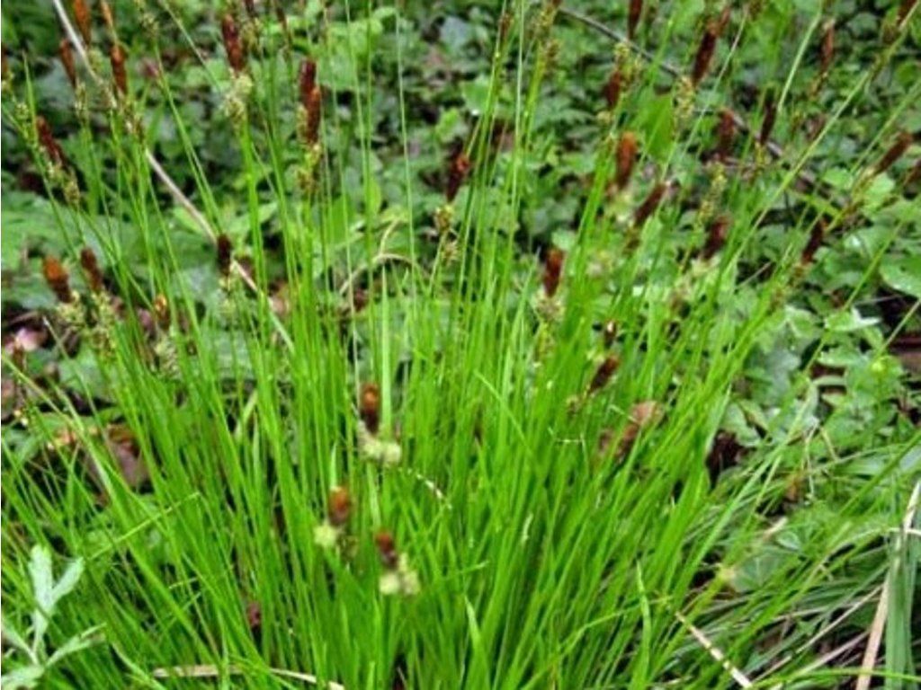 Schattensegge - ein kleines, horstbildendes Gras, das bis zu 10-20 cm hoch wird. Die Blüten sind kastanienbraun und erscheinen von April bis Mai. Geeignet für nährstoffreiche, feuchte Böden, verträgt auch lehmigen Boden. Die Blätter hängen leicht herab.