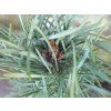 Borovice bělokorá - eine Kiefer, die je nach Wachstumsbedingungen 15 - 20 m hoch wird. Die Nadeln sind etwa 10 cm lang und bleiben etwa 6 Jahre am Baum. In der Jugend hat sie ein schmales und aufrechtes Wachstum, die Verzweigung ist regelmäßig. Allmählich wird die Krone kegelförmig, die Verzweigung ist horizontal und die Äste bilden unregelmäßige Etagen. Die Nadeln sind grün, glänzend und wachsen in Büscheln. Die Zapfen sind gelblich bis bräunlich gefärbt und eiförmig.