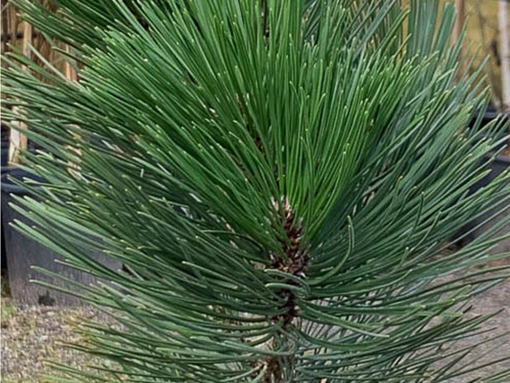 Steinkiefer 'Malinki' - ist eine Art aus den Bergregionen des Balkans und Süditaliens, charakteristisch durch eine sehr widerstandsfähige, mosaikartig zerbrochene Rinde und steife Nadeln zu zweit. Die Sorte 'Malinki' entstand als dänische Selektion in der Baumschule Tånum Planteskole und kam in den 90er Jahren des 20. Jahrhunderts in den Handel. Sie bildet eine elegant pyramidenförmige bis schmal-ovale Krone mit dichter Verzweigung und einer deutlich schlankeren Form als die Grundart. Nach 10 Jahren liegt die Höhe bei etwa 1–1,5 m, im ausgewachsenen Zustand liegt sie in Gärten meist bei etwa 3–4 m Höhe bei einer Breite von 1,5–2 m, an sehr günstigen Standorten kann sie im Laufe der Zeit höher wachsen. Die Nadeln sind glänzend dunkelgrün, 6–11 cm lang, mit Spitzen, die oft leicht nach innen gebogen sind, was bei jungen Trieben auffällt. Die Zapfen sind oval, wachsen zu zweit oder zu dritt, anfangs grün, bei Reife braun. Im Garten eignet sie sich als immergrünes Element für Schotterbeete, zu Gräsern und zu blühenden Sträuchern, zum Beispiel zu Spieren und Johannisbeeren. Die helle, fast weißliche Rinde an älteren Stämmen ist typisch für die Art und wird mit dem Alter deutlicher. Die Pflanze hat keine Dornen oder giftigen Teile und behält das ganze Jahr über ihre Struktur, was auch für Gärten mit Kindern geeignet ist.