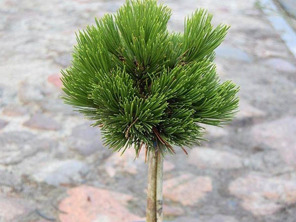 Waldkiefer 'Schmidtii' – eine Gebirgsart des Balkans, berühmt für ihre Widerstandsfähigkeit und ihre mosaikartig aufgerissene Rinde. Die Sorte 'Smidtii' wurde 1926 in der Nähe von Sarajevo entdeckt und hat sich in der Gärtnerei als außergewöhnlich langsam wachsende, kugelförmige Art verbreitet, die oft auch als 'Šmidtii' oder 'Schmidtii' bezeichnet wird. Die Pflanze bildet kurze, dicht gedrängte Triebe und dunkelgrüne Nadeln von etwa 3–5 cm Länge in Büscheln zu je zwei, die sich an den Zweigenden zu „Schälchen“ zusammenrollen. Nach 10 Jahren erreicht sie üblicherweise einen Durchmesser von etwa 0,3–0,5 m, in Gärten wächst sie normalerweise auf eine Höhe und Breite von etwa 0,8–1 m heran. Bei sehr alten Exemplaren in Parks kann im Laufe der Zeit eine deutlich größere Dimension auftreten, dennoch handelt es sich weiterhin um eine kompakte Form. An diesem Kultivar treten Zapfen oft selten oder gar nicht auf, und der dekorative Effekt beruht auf den Nadeln und der dichten Textur. In der Komposition harmoniert sie gut mit Hauswurzen, Fetthennen, Lavendel, Thymian und niedrigen Gräsern, oder als Kontrast zu Steinen. In der Literatur wird angegeben, dass der Mutterbaum seinen kompakten Charakter auch nach über 100 Jahren beibehalten hat und nur wenige Meter erreichte, was das außerordentlich langsame Wachstum gut erklärt. Auf veredelten Stämmchen wird sie oft als „grüne Kugel“ über einer Unterpflanzung verwendet, während wurzelechte Pflanzen ein niedriges Polster bilden.