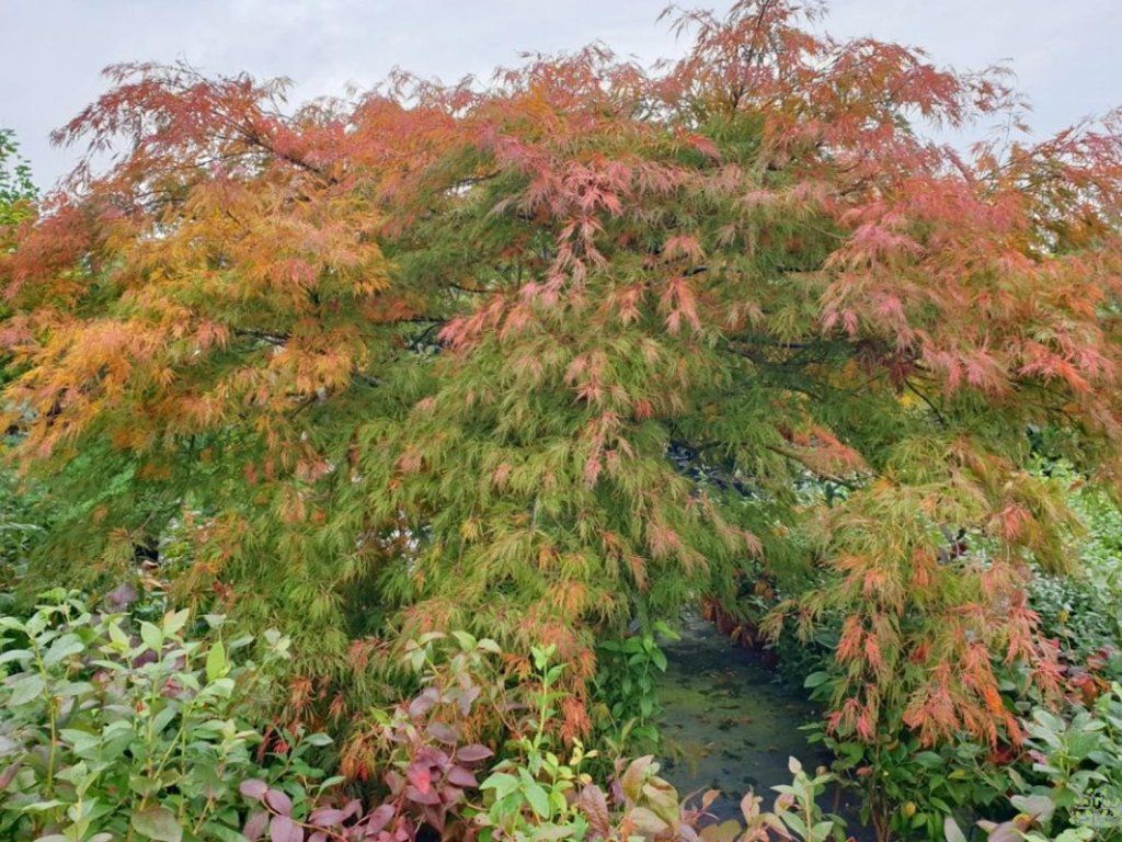 Japanischer Fächerahorn - die Grundart des Fächerahorns, der wegen seiner einzigartig geformten und intensiv gefärbten Blätter gerne gepflanzt wird. Ihr Zauber zeigt sich bereits im Frühling und endet erst mit dem Laubfall. Unter unseren Bedingungen wächst der Fächerahorn langsamer, erreicht eine Höhe von 3–4 m, bei ähnlicher Breite und bildet so breit ausladende Sträucher oder niedrigere Bäume. Die Blätter sind der Hauptschmuck dieser Bäumchen oder Sträucher. Sie erscheinen in großer Zahl und sind typischerweise scharf eingeschnitten. Sie sind die ganze Saison über sehr attraktiv. Die Farben sind jedoch am vielfältigsten im Herbst, wenn sie sich in einer Mischung aus Gelb-, leuchtend orangefarbenen, purpurfarbenen und roten Tönen verfärben. Ein ausreichend heller Standort sorgt für die intensivsten Töne. Weltweit gibt es derzeit viele verschiedene Kultivare, die sich in Farbe, Wuchsform oder Blattform unterscheiden, aber eines ist sicher: Egal, welche Art wir wählen, er wird zweifellos zu einem beliebten und auffälligen Gartenelement.