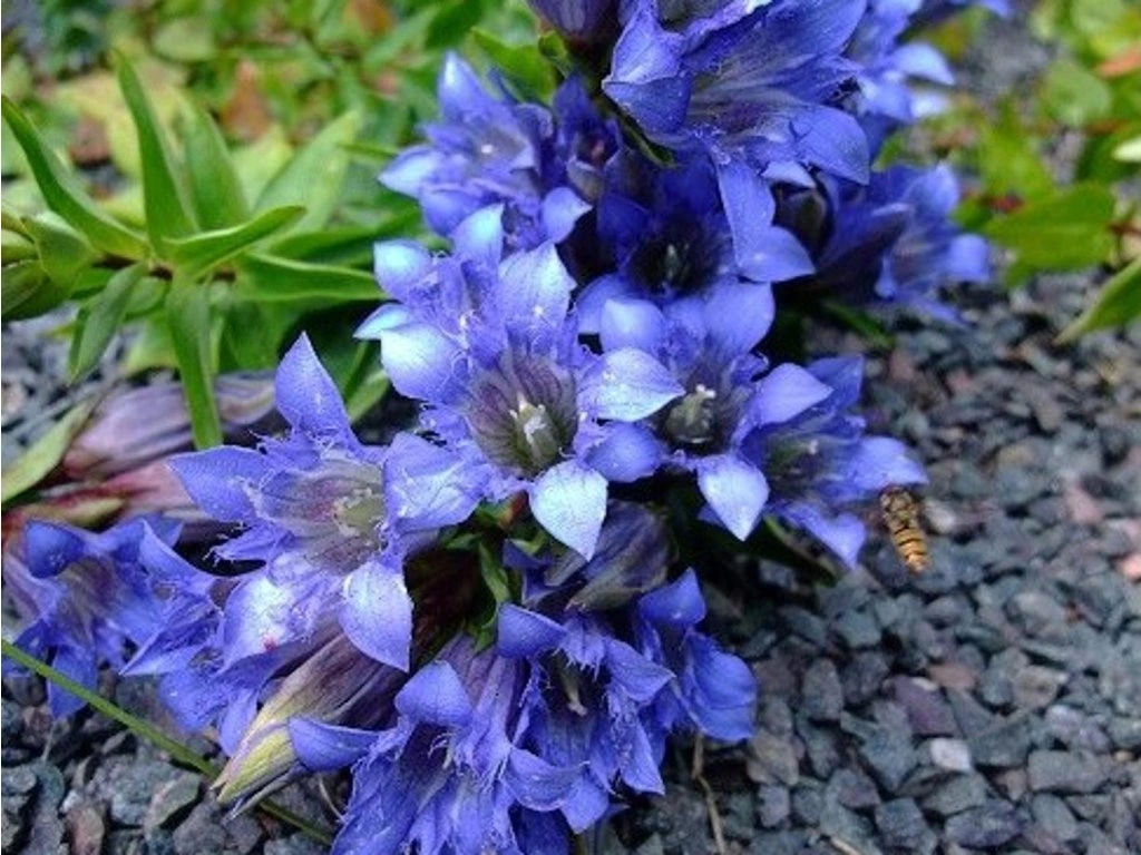 Enzian-Tausendgüldenkraut- eine ausdauernde Art aus der Familie der Enziangewächse, natürlich verbreitet vom Kaukasus über die Türkei und den Iran bis nach West- und Zentralasien. In der Natur wächst er auf sonnigen Berghängen und felsigen Standorten mit guter Drainage, oft an leicht feuchteren Stellen ohne langfristige Staunässe. Im Garten bildet er niedrige, liegende bis aufrechte Stängel von etwa 15–30 cm Länge und bildet mit der Zeit kompakte Horste bis hin zu teppichartigen Beständen von meist 10–20 cm Höhe und etwa 30–40 cm Breite. Die Blätter sind gegenständig, lanzettlich bis eiförmig, tiefgrün und bedecken die Stängel dicht. Von Juli bis September erscheinen an den Triebspitzen Büschel von 6–8 Blüten, die einzelnen glockenförmigen Blüten sind etwa 4 cm lang, weit geöffnet, blau bis blauviolett, mit einem helleren Schlund und feiner Aderung im Inneren. Die Pflanze wird für ihren reinen Blauton geschätzt, zu einer Zeit, in der viele Steingartenpflanzen bereits verblüht sind. Dank ihres niedrigen Wuchses eignet sie sich für Steingärten, Schotterbeete, den Vordergrund von Staudenbeeten und für Kübel, wo sie ein festes Polster bildet. In der Komposition harmoniert sie gut mit Sedum, niedrigen Storchschnäbeln, Thymian oder feinen Ziergräsern, die die blauen Blüten optisch abmildern.