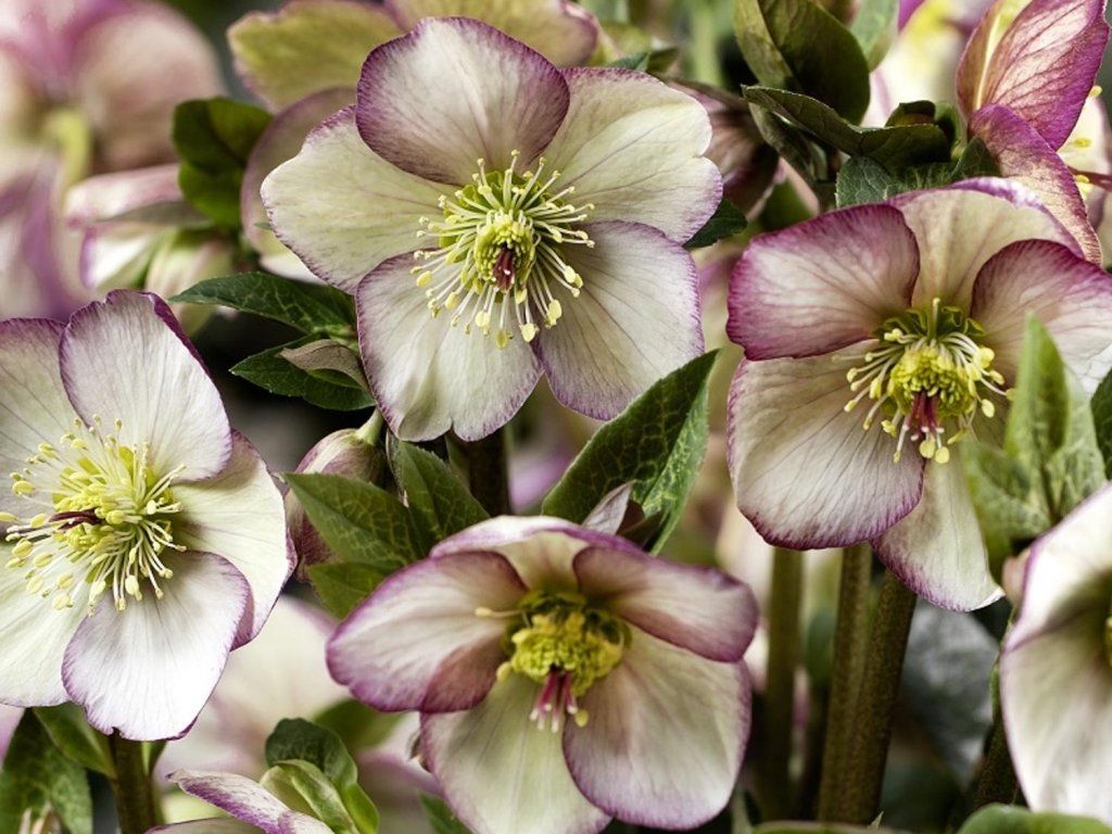 Christrose 'HGC® Ice n' Roses Maddy Marble' - gehört zur Serie Ice n’ Roses® aus dem Programm Helleborus Gold Collection® des Züchters Josef Heuger. Es handelt sich um eine interspezifische Hybride, die für feste, aufrechte Stiele und lange Winterblüte gezüchtet wurde, wenn die meisten Beete noch ruhen. Die immergrünen, ledrigen Blätter sind dunkelgrün mit heller Marmorierung und bleiben auch nach dem Verblühen dekorativ. Die Blüten erscheinen von Dezember bis März je nach Winterverlauf, an wärmeren Standorten oft früher, und sind cremeweiß mit einem ausgeprägten rosa bis weinroten Rand. Gelbe Staubgefäße bilden eine helle Mitte und die Blüten werden nach vorne bis leicht nach oben gehalten, sodass sie auch im Unterwuchs gut erkennbar sind. Im ausgewachsenen Zustand erreicht sie eine Höhe von ca. 50–60 cm in Blüte, die Breite beträgt etwa 70–80 cm, daher eignet sie sich sowohl als Solitärstaude als auch in der Gruppe. In der Komposition bewährt sie sich mit Bergenien, Purpurglöckchen, Seggen, Immergrün und frühen Zwiebelblumen, am Hauseingang wirkt sie als ruhiger Winterakzent. Die Pflanze ist giftig. Blüten spenden Pollen und Nektar während der Tauperiode und werden von frühzeitig aktiven Bestäubern gesucht, daher eignen sie sich auch für naturnäher gestaltete Vorgärten. Für Arrangements empfiehlt sich der Schnitt in lauwarmes Wasser, die Blüten behalten ihre Form mehrere Tage.