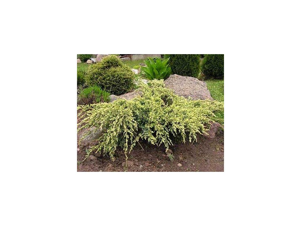 Schuppen-Wacholder 'Holger' - ein Nadelbaum aus der Familie der Zypressengewächse und der Gattung Wacholder, der bis zu 1 Meter in Höhe und Breite wächst. Diese Sorte hat junge Triebe gelb und ältere bläulich.