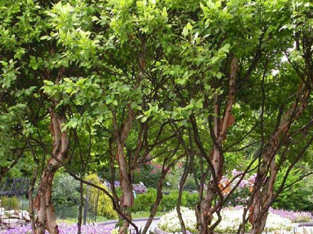 Birke 'Fox Valley' - eine besonders schöne, kompakt wachsende Birke. Es handelt sich um einen Kultivar der nordamerikanischen Schwarzbirke aus der Familie der Birkengewächse, einer Art, die ursprünglich in Flussauen und an den Rändern von Feuchtgebieten im östlichen Teil der USA heimisch ist. Er ist bekannt für seinen kompakteren, ruhigen Habitus, wodurch er auch in kleinere Gärten passt. Die größte Zierde ist die Rinde an Stämmen und dickeren Ästen: Schon bei jungen Pflanzen schält sie sich in papierartigen Streifen ab und schichtet sich in Tönen von Creme, Zimt und Kupfer, mit kleinen Lentizellen. Die Pflanze bildet oft mehrere Stämme und entwickelt eine dichte, breit kegelförmige bis abgerundete Krone. Die Blätter sind rautenförmig bis eiförmig, 4–7 cm lang, auf der Oberseite glänzend, werden im Sommer dunkelgrün und färben sich im Herbst hellgelb. Im März bis April erscheinen die Kätzchen, die im Frühjahr Pollen tragen; die Samenbildung kann bei diesem Kultivar geringer sein. In Kompositionen wirkt er als Solitär am Wasser, am Rasenrand und in Schotterbeeten, wo die winterliche Rindenzeichnung das Hauptmotiv bleibt. Er passt gut zu Ziergräsern, Spieren, Hartriegel und Stauden für feuchtere Böden, z. B. zu Schwertlilien oder Taglilien.