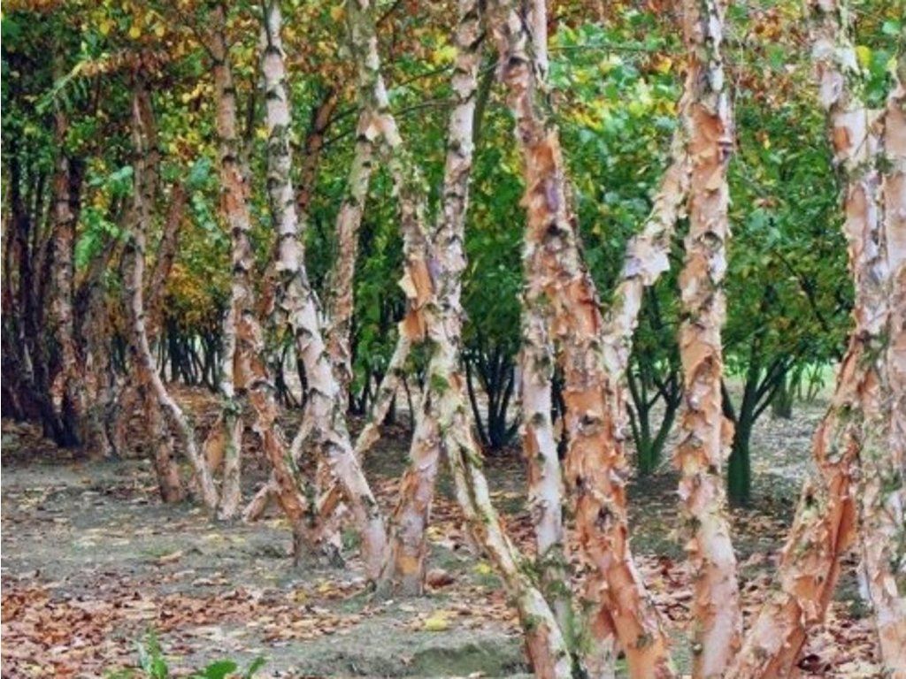 Schwarze Birke - lateinisch Betula nigra, stammt aus dem südöstlichen Teil Nordamerikas, wo sie natürlich entlang von Flüssen, in Überschwemmungsgebieten und in feuchteren Wäldern wächst. Diese Bindung an Wasserstandorte spiegelt sich auch in ihren Anbaubedürfnissen wider. In europäischen Gärten wird sie vor allem als markantes Ziergehölz mit ungewöhnlicher Rinde geschätzt. Im Erwachsenenalter erreicht sie eine Höhe von ca. 12–18 m und eine Kronenbreite von 8–12 m. Der Habitus ist aufrecht bis breit ausladend, oft mehrstämmig. Das auffälligste Merkmal ist die Rinde, die sich in dünnen, papierartigen Streifen ablöst und allmählich von dunkelbraunen, zimtfarbenen bis zu hellcremigen Farbtönen übergeht. Die Blätter sind eiförmig, glänzend grün, fein gesägt und verfärben sich im Herbst gelb. Die Blütezeit ist von April bis Mai mit unauffälligen Kätzchen. Der Baum hat besonders im Winter und im frühen Frühling einen hohen ästhetischen Wert, wenn die Struktur des Stammes und der Äste zur Geltung kommt. Er wird als Solitär, in Gruppen und in der Nähe von Wasserflächen eingesetzt.
