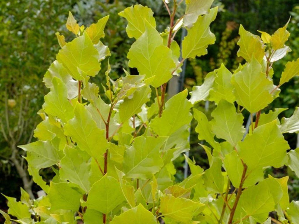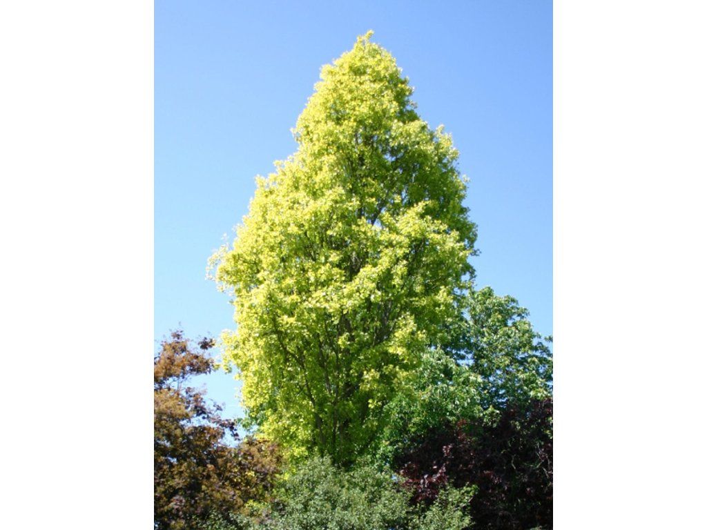 Pappel ´Lombard Gold´ - langsam wachsender Baum, der unter unseren Bedingungen eine Höhe von bis zu 6 m erreicht. Das Wachstum ist säulenförmig, er wächst langsam. Fein gezackte, zugespitzte Blätter sind glänzend, grün bis gelblich. Sie sind schön eingeschnitten. Die Blütenstände bilden Kätzchen, die Blütezeit ist im März. Ideal als Solitärpflanze.