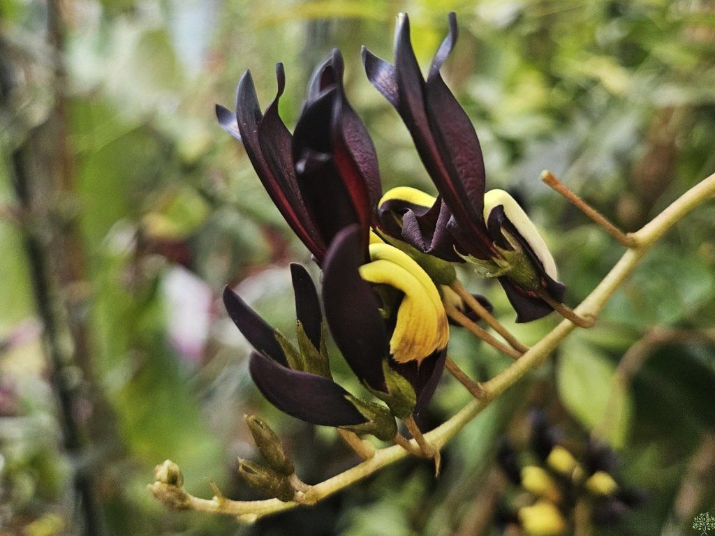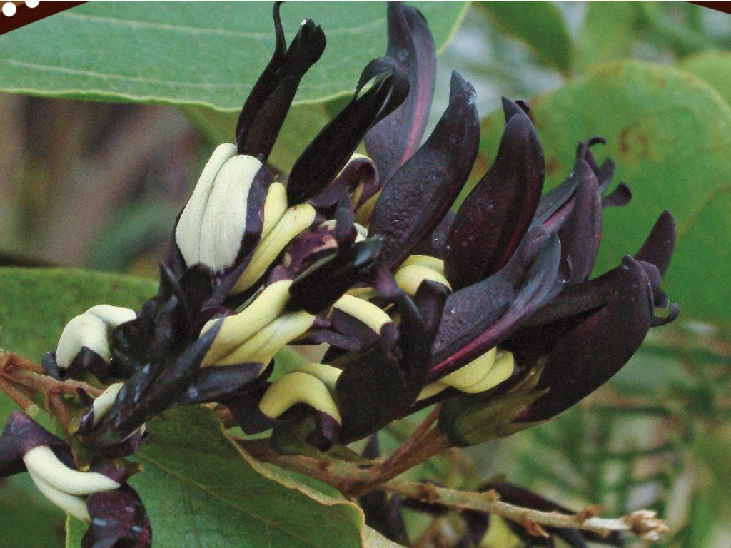 Schwarze Kennedie - eine schnell wachsende Kletterpflanze aus Australien. Sie hat auffällige schwarze und gelbe Blüten, die Erbsenblüten ähneln, und dunkelgrüne, dreilappige Blätter. Sie erreicht eine Höhe von 4–6 Metern, kann aber auch länger werden, wenn sie Halt hat. Sie blüht vom Frühling bis zum Sommer, in wärmeren Regionen auch länger. Sie ist nicht vollständig frostbeständig, verträgt Temperaturen um 0 °C, kann aber bei stärkerem Frost absterben. In kälteren Regionen kann sie als Kübelpflanze kultiviert werden. Sie eignet sich als Zierpflanze für Pergolen, Zäune oder Spaliergerüste.
