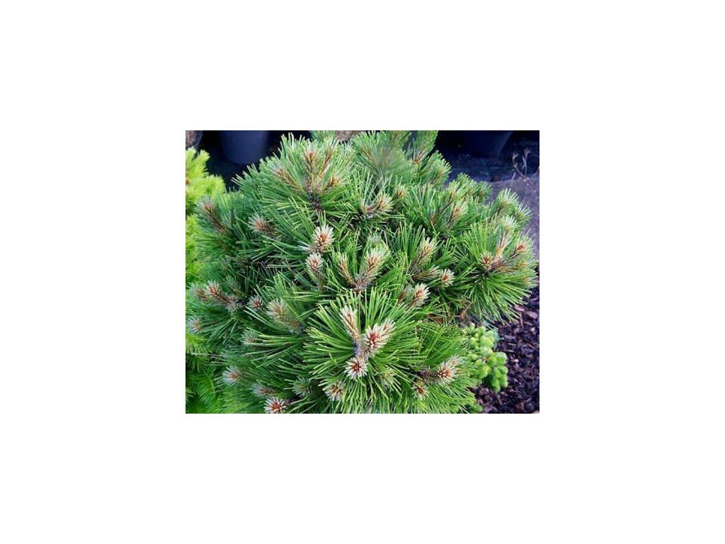 Schwarzkiefer 'De Gaulle' - anmutiger Zwergstrauch mit jährlichen Zuwächsen von ca. 5cm. Die Form ist sehr regelmäßig, dicht, kompakt, eher kugelförmig. Die Nadeln sind fest, lang und von frischer grüner Farbe. Die Zapfen sind sehr klein, spitz zulaufend, hellbraun; sie sind vollständig mit weißem Wachs bedeckt. Perfekte Wahl für Steingärten, aber auch für die Kultivierung in Behältern.