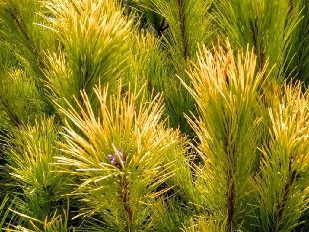 Schwarzkiefer 'Goldfingers' - klein mäßig wachsende Kiefernart. Nach 10 Jahren erreicht sie eine Höhe von 2-3 m und eine Breite von 1,5 m. Die Krone ist lockerer mit horizontalen Ästen, mit der Zeit wird sie dichter und nimmt die Form eines breiten Kegels an. Die Nadeln sind gelbgrün, färben sich im Herbst goldgelb und erzeugen einen schönen Effekt. Für die schönste Färbung empfehlen wir einen sonnigen Standort. Eignet sich für kleinere Gärten als interessanter Solitär.